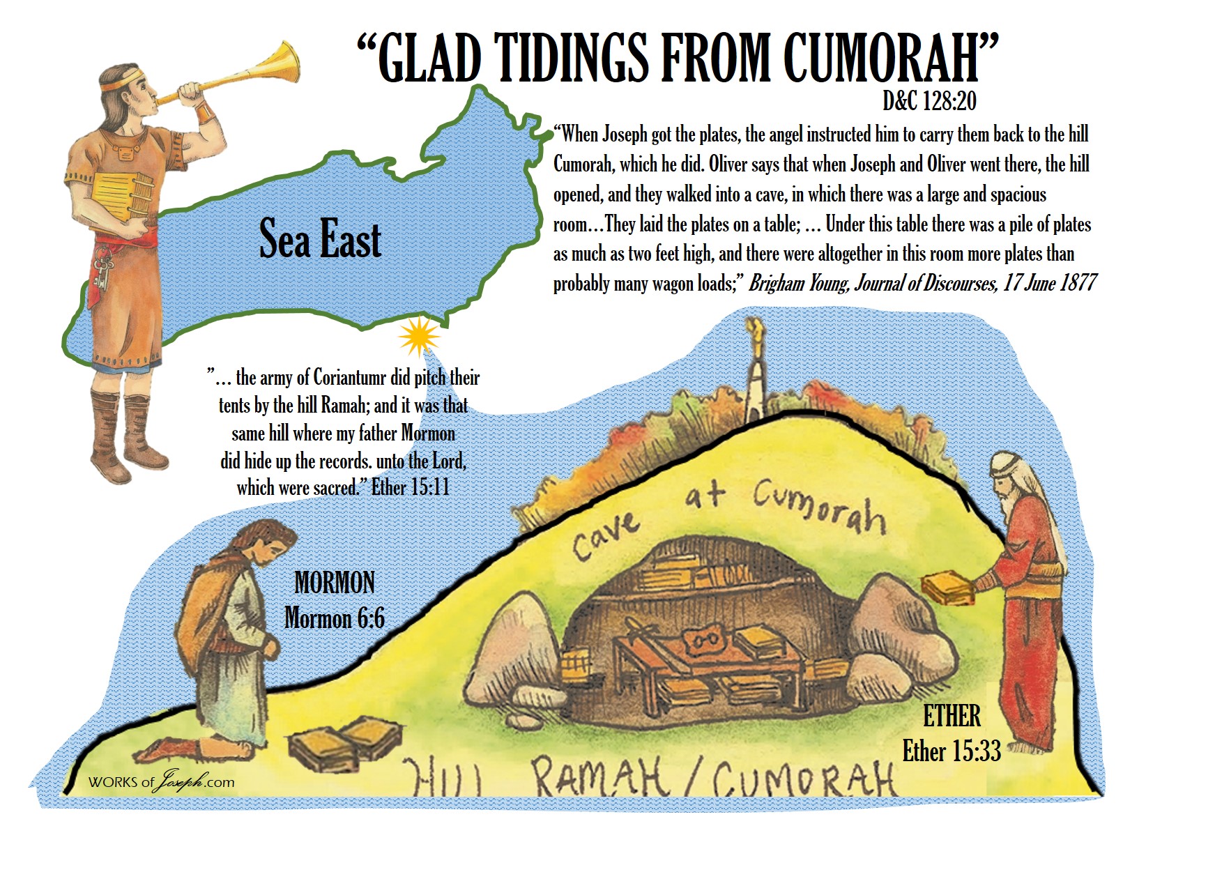 3. According to Joseph Fielding Smith, “In the Book of Mormon story the Lamanites were constantly crowding the Nephites back towards the north and east. If the battles in which Zelph took part were fought in the country traversed by the Zion’s Camp, then we have every reason to believe from what is written in the Book of Mormon, that the Nephites were forced farther and farther to the north and east until they found themselves in the land of Ripliancum, which both Ether and Mormon declare to us was the land of Ramah or Cumorah, a land of “many waters,” which “by interpretation, is large, or to exceed all.” This being true, what would be more natural then that Moroni, like his father Mormon, would deposit the plates in the land where the battles came to an end and the Nephites were destroyed? This Moroni says he did, and from all the evidence in the Book of Mormon, augmented by the testimony of the Prophet Joseph Smith, these final battles took place in the territory known as the United States and in the neighborhood of the Great Lakes and hills of Western New York. And here Moroni found the resting place for the sacred instruments which had been committed to his care.”