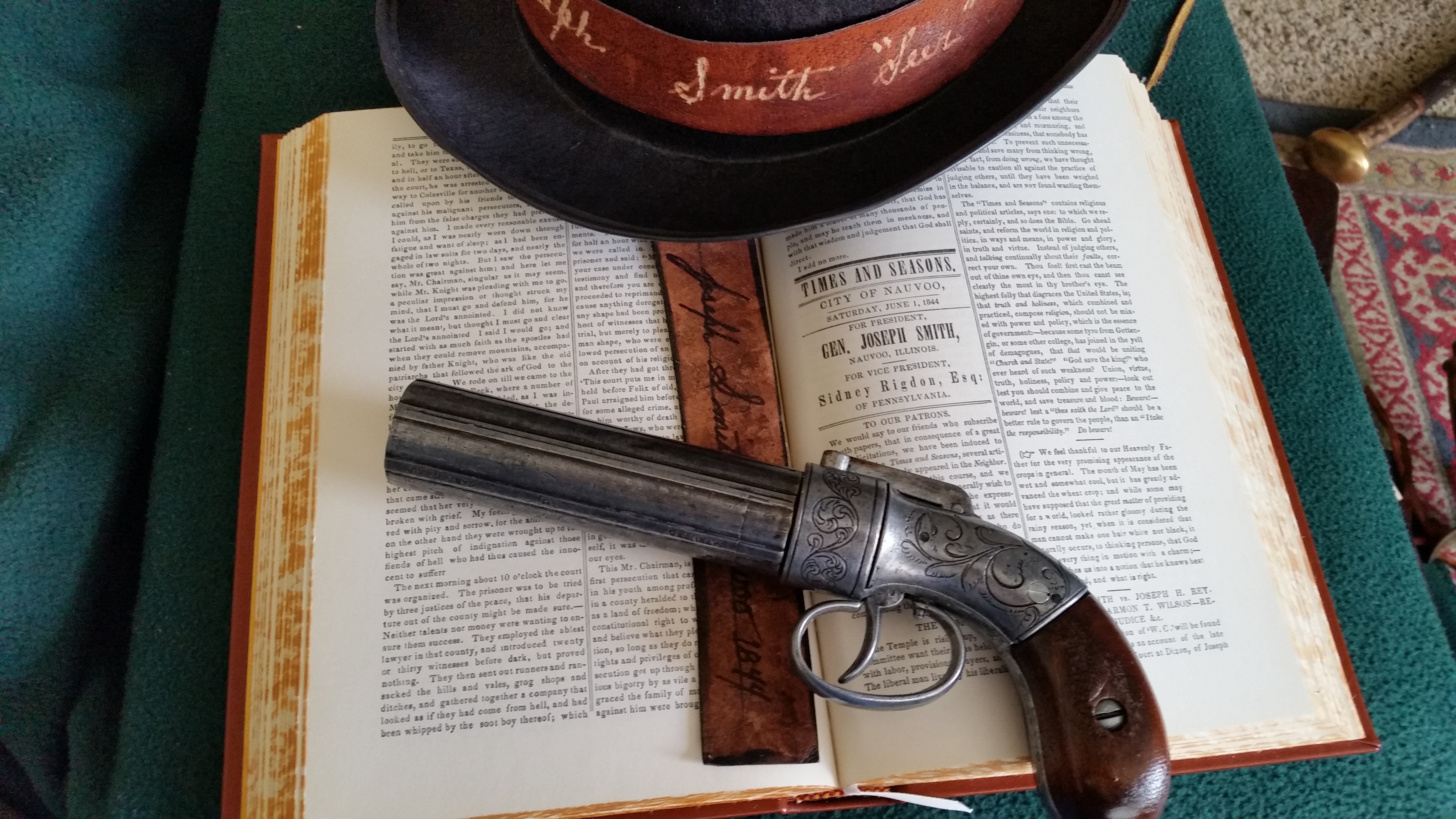 June 18th, 1844 – Unsheathing his sword the Prophet Joseph Smith said: “I call God and angels to witness that I have unsheathed my sword with a firm and unalterable determination that this people shall have their legal rights, and be protected from mob violence, or my blood shall be spilt upon the ground like water, and my body consigned to the silent tomb, but if there is one drop of blood shed on this occasion, the sword shall never again be sheathed until Christ comes to reign on earth.
